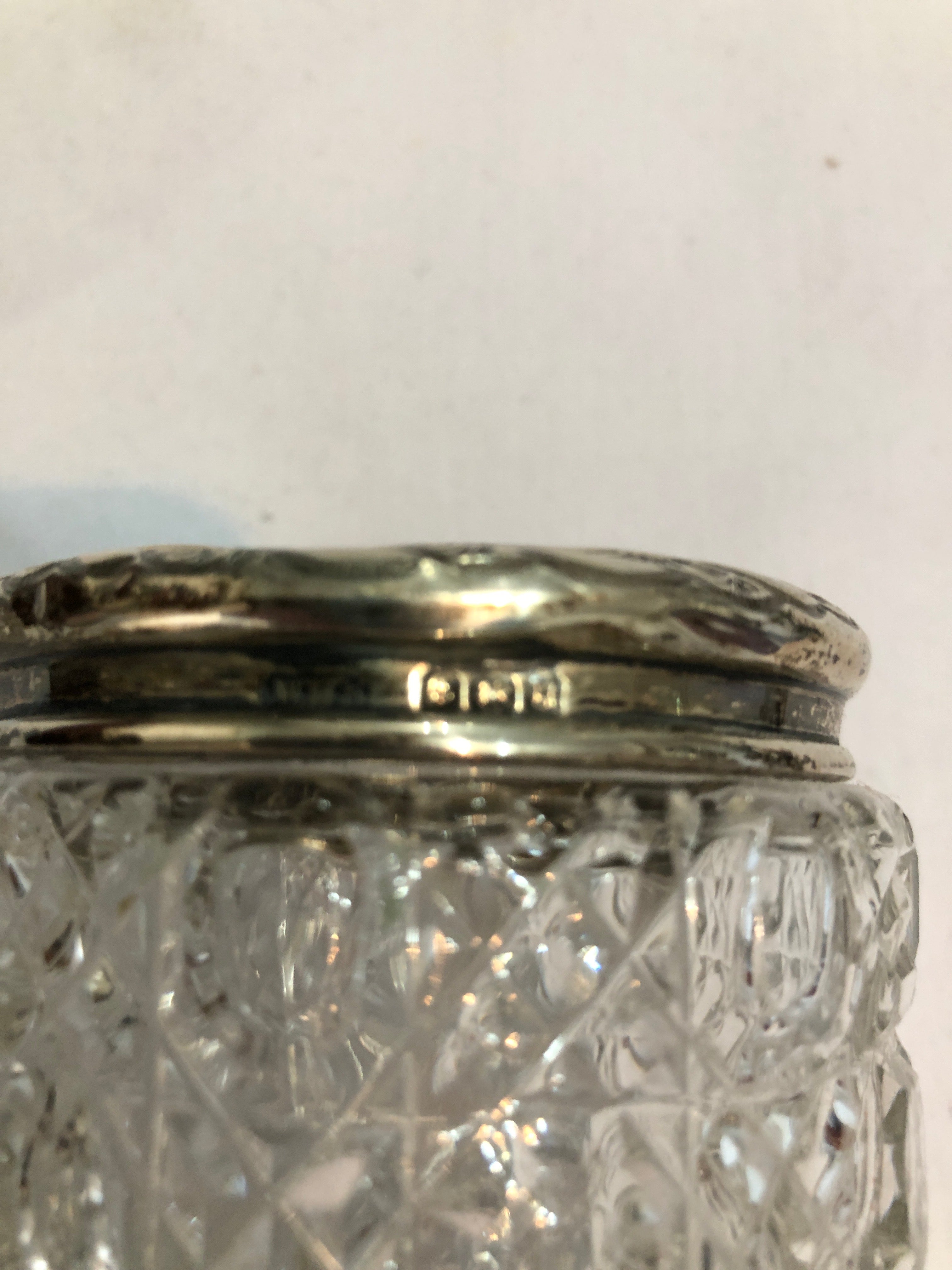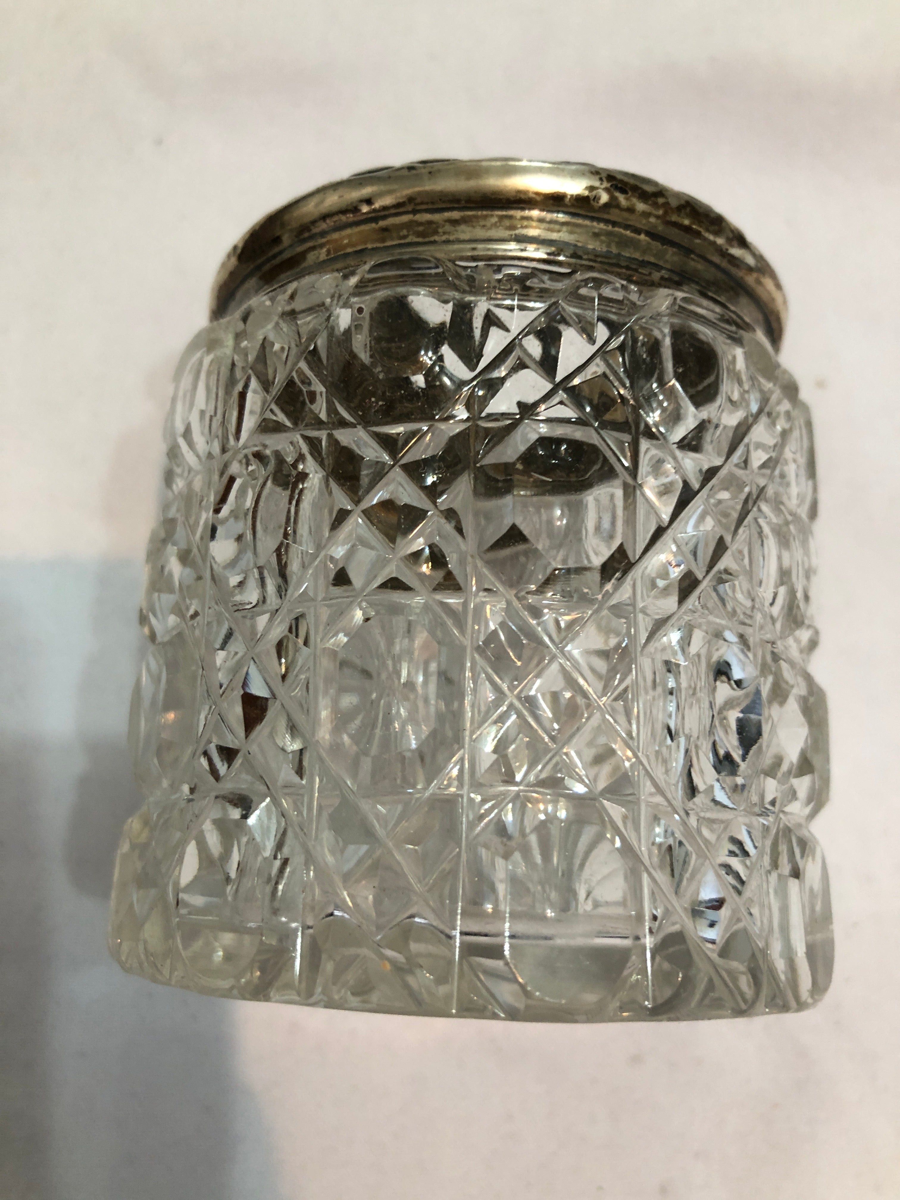 Antique Cut Glass Silver Topped Dressing Table Pot.
