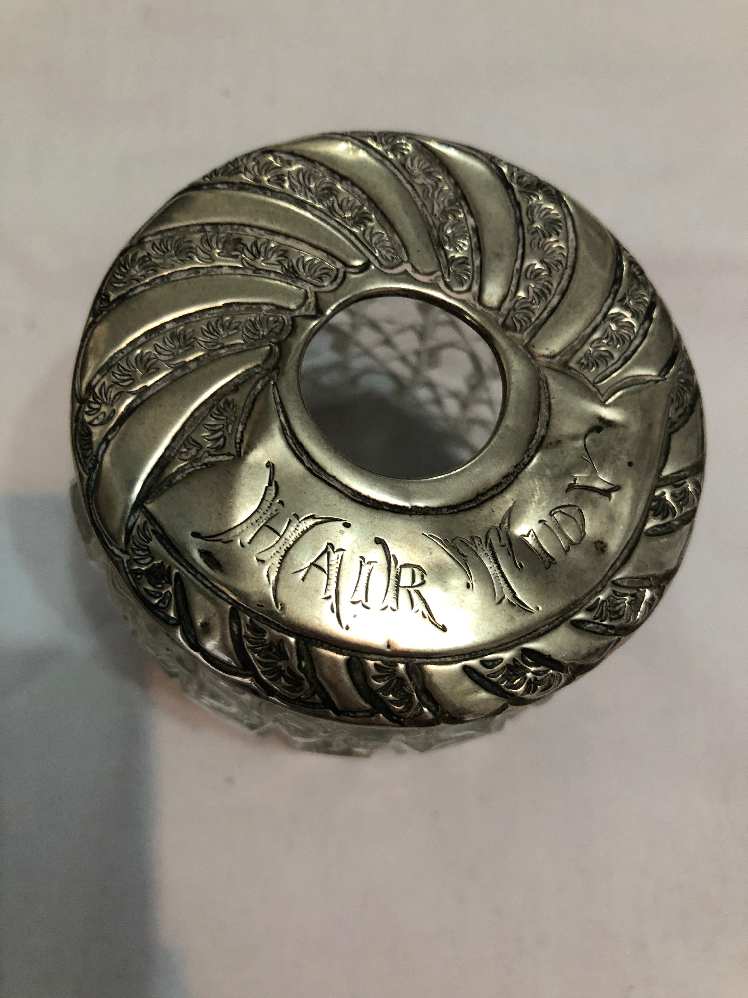 Here we have a lovely Antique Siler Topped Cut Glass Dressing Table Jar/Hair Tidy.