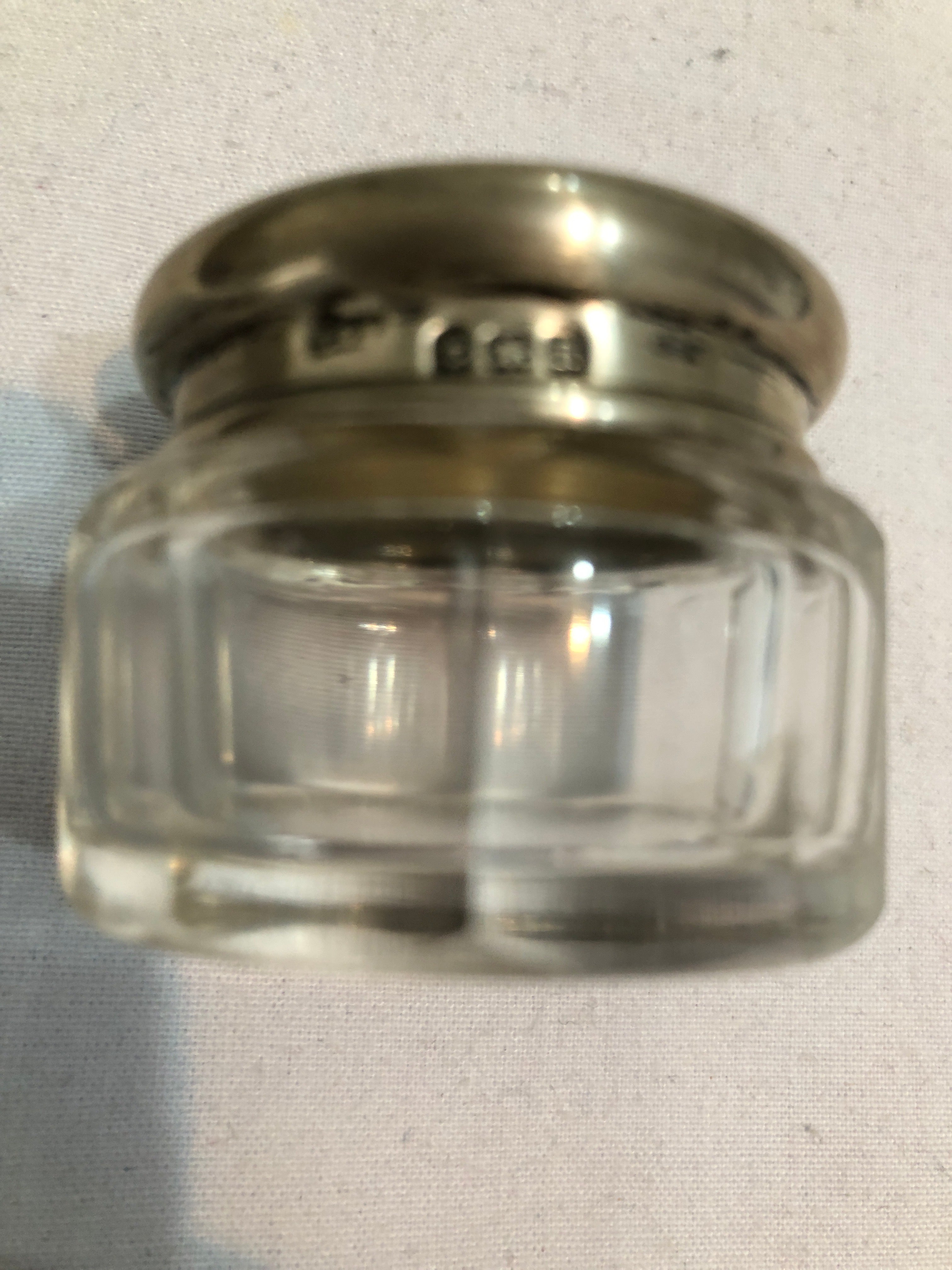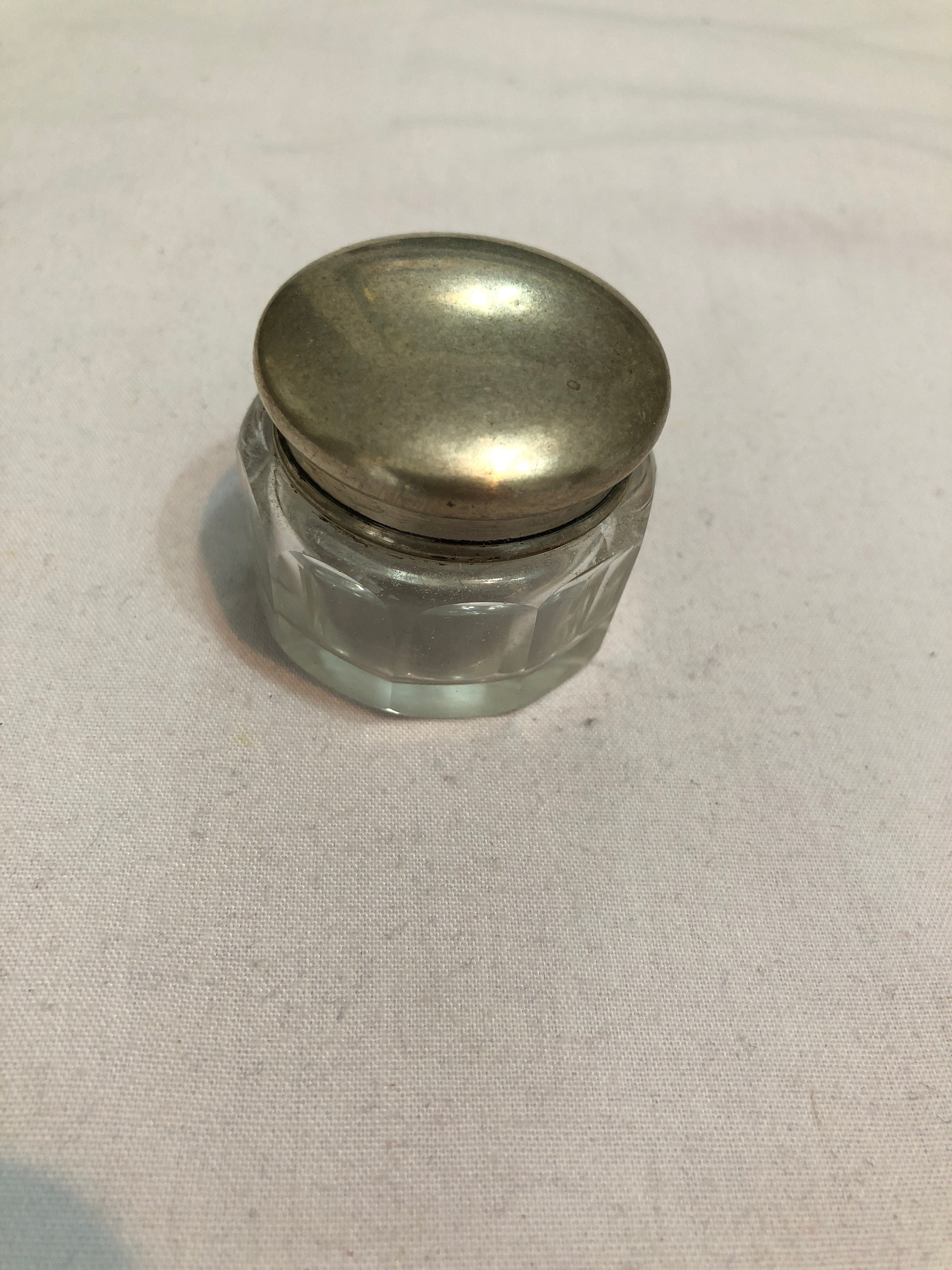 Here we have a lovely Antique Silver Topped Glass Dressing Table Pot.