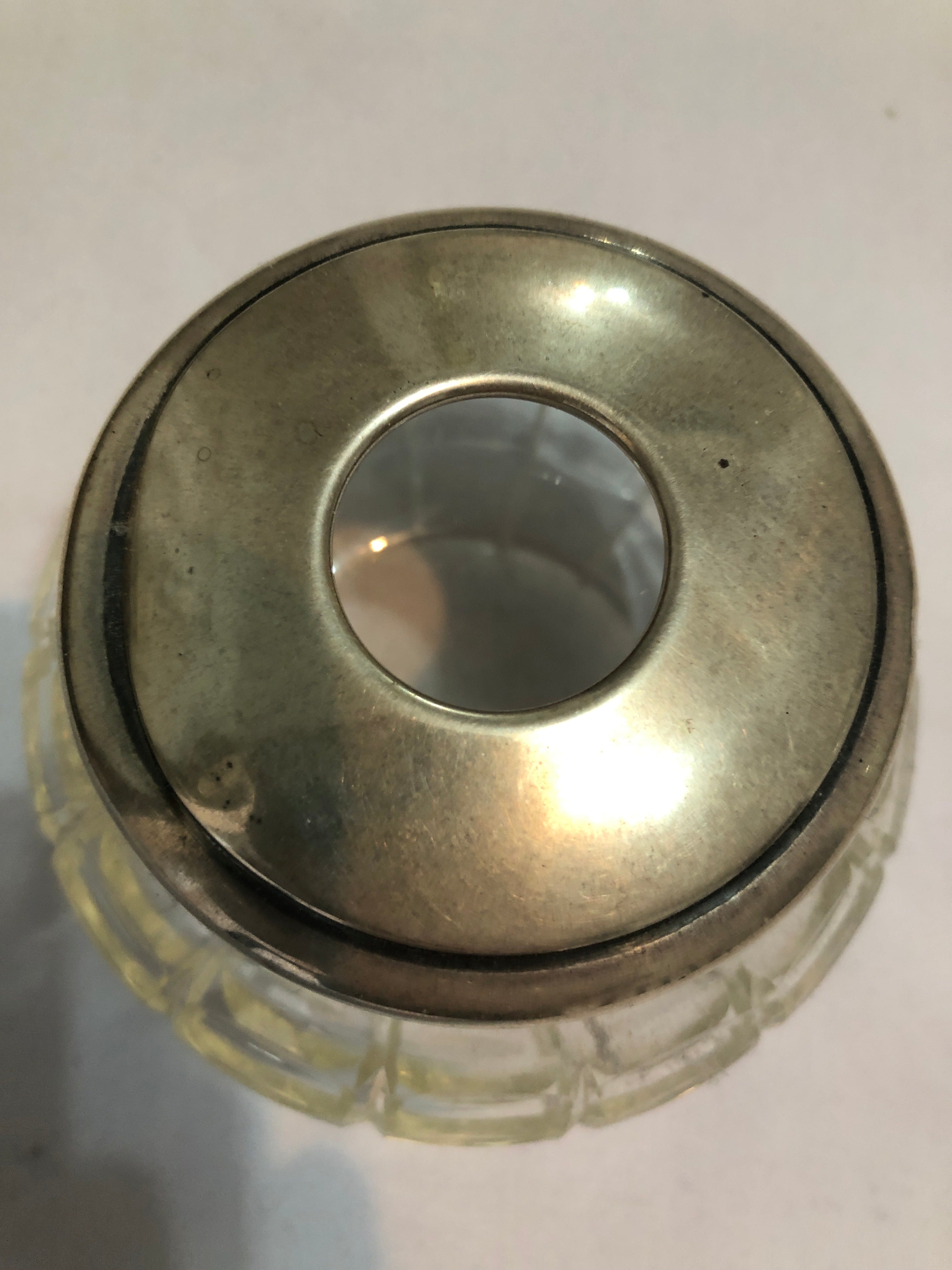 Antique Silver Topped Cut Glass Dressing Table Jar.