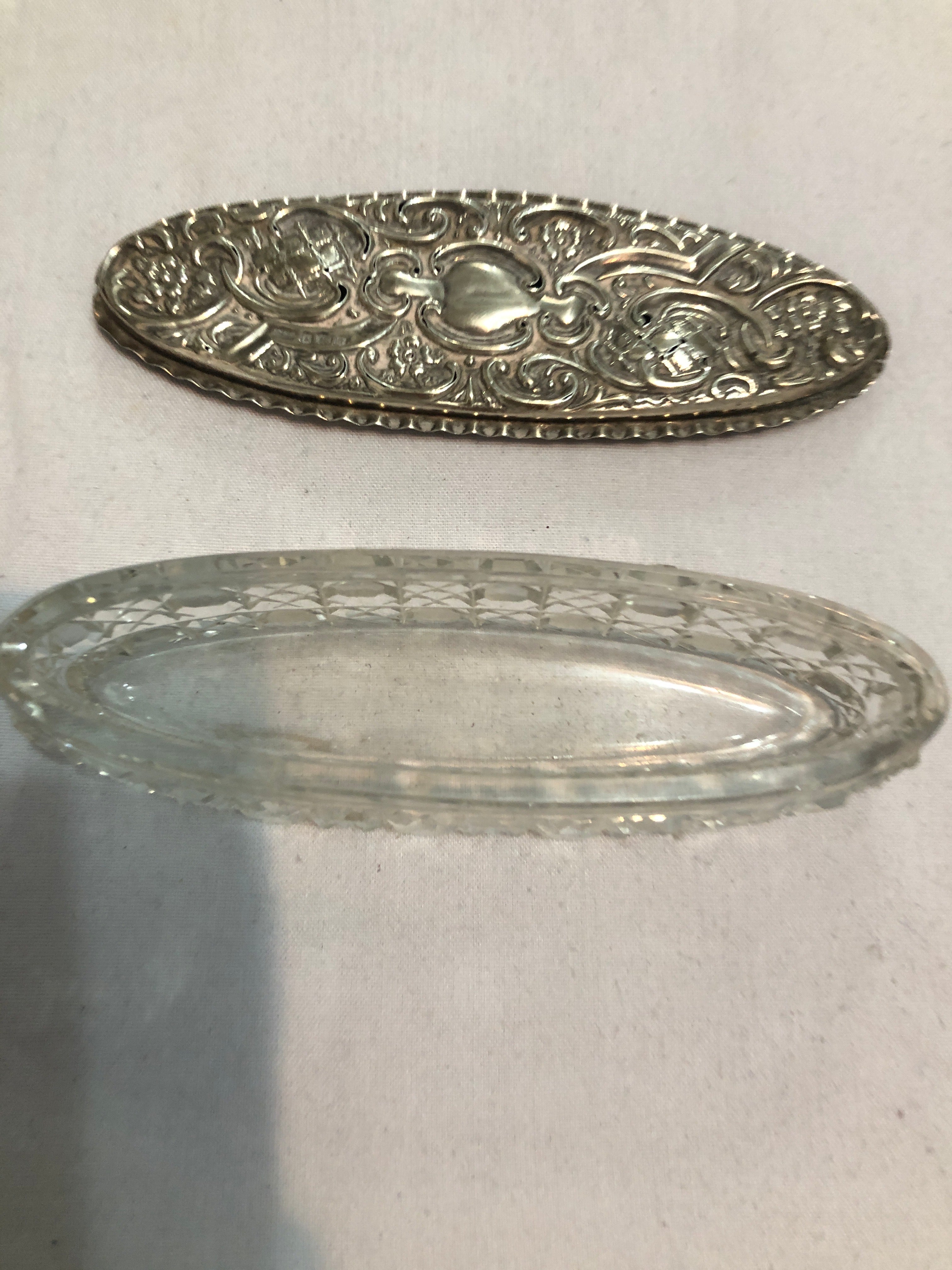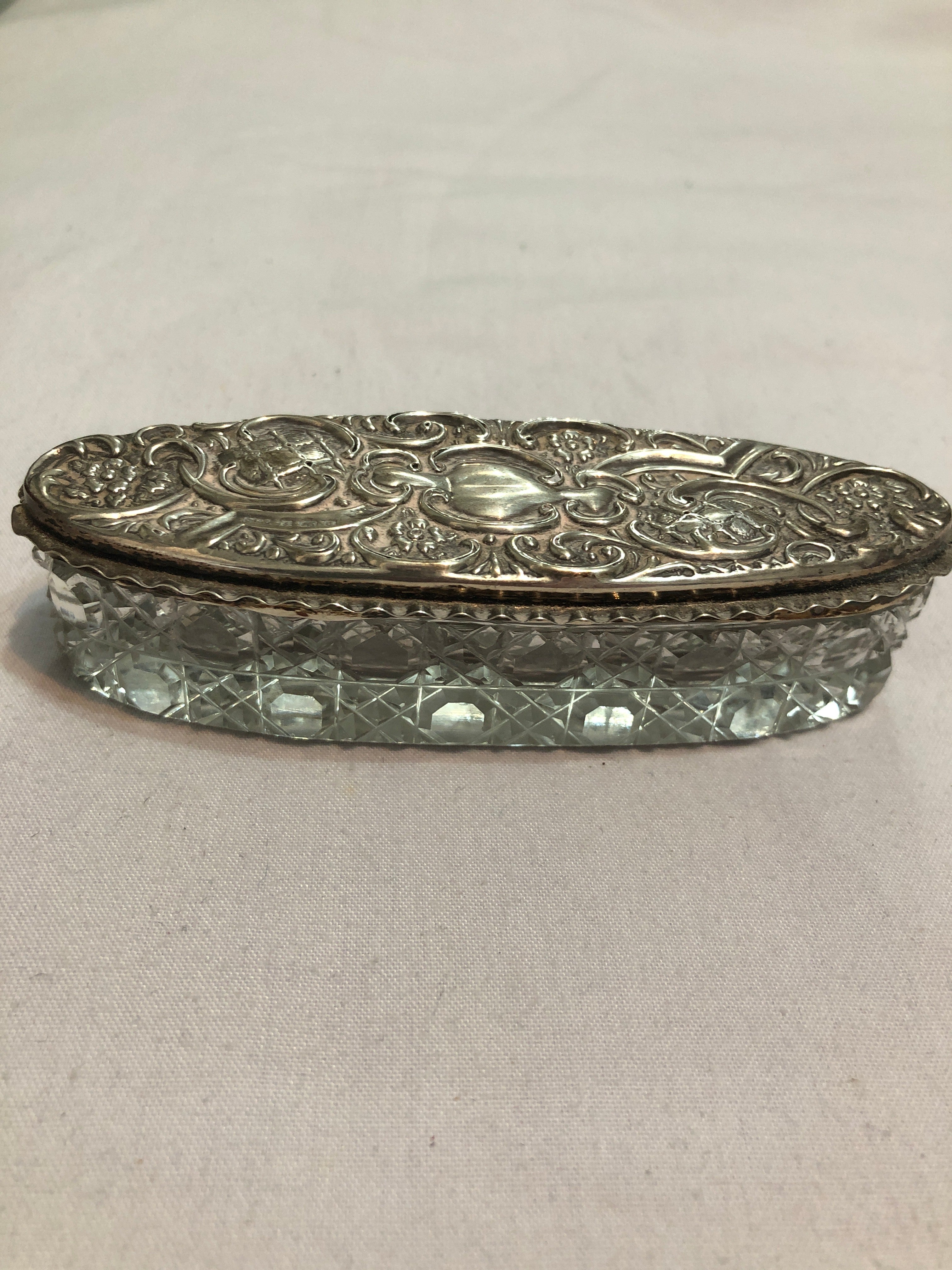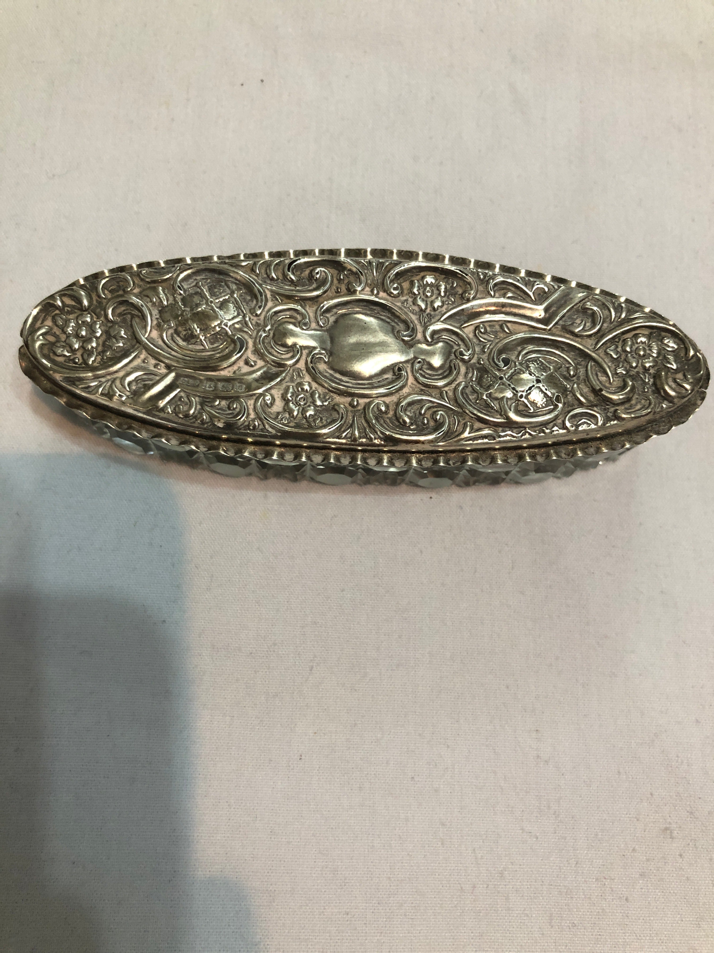 Antique Silver Topped Cut Glass Dressing Table Jar.