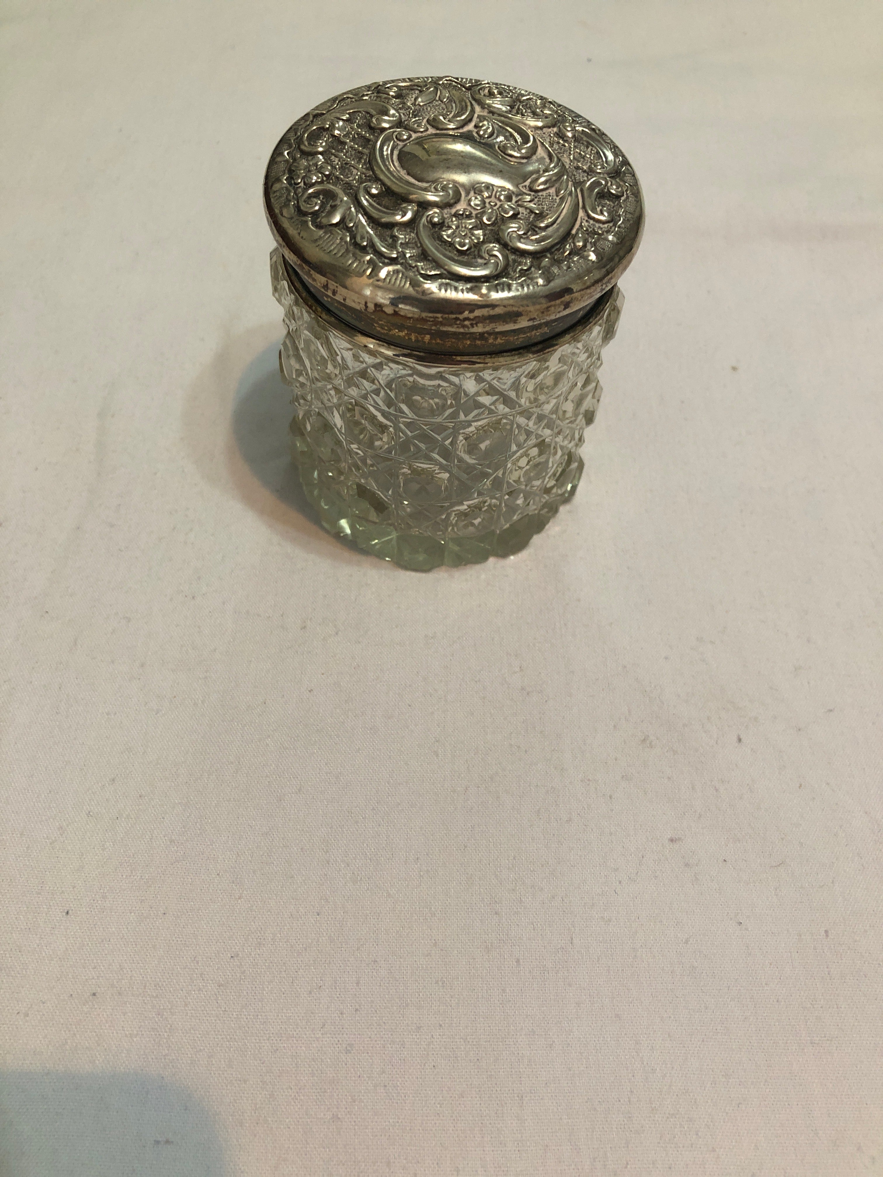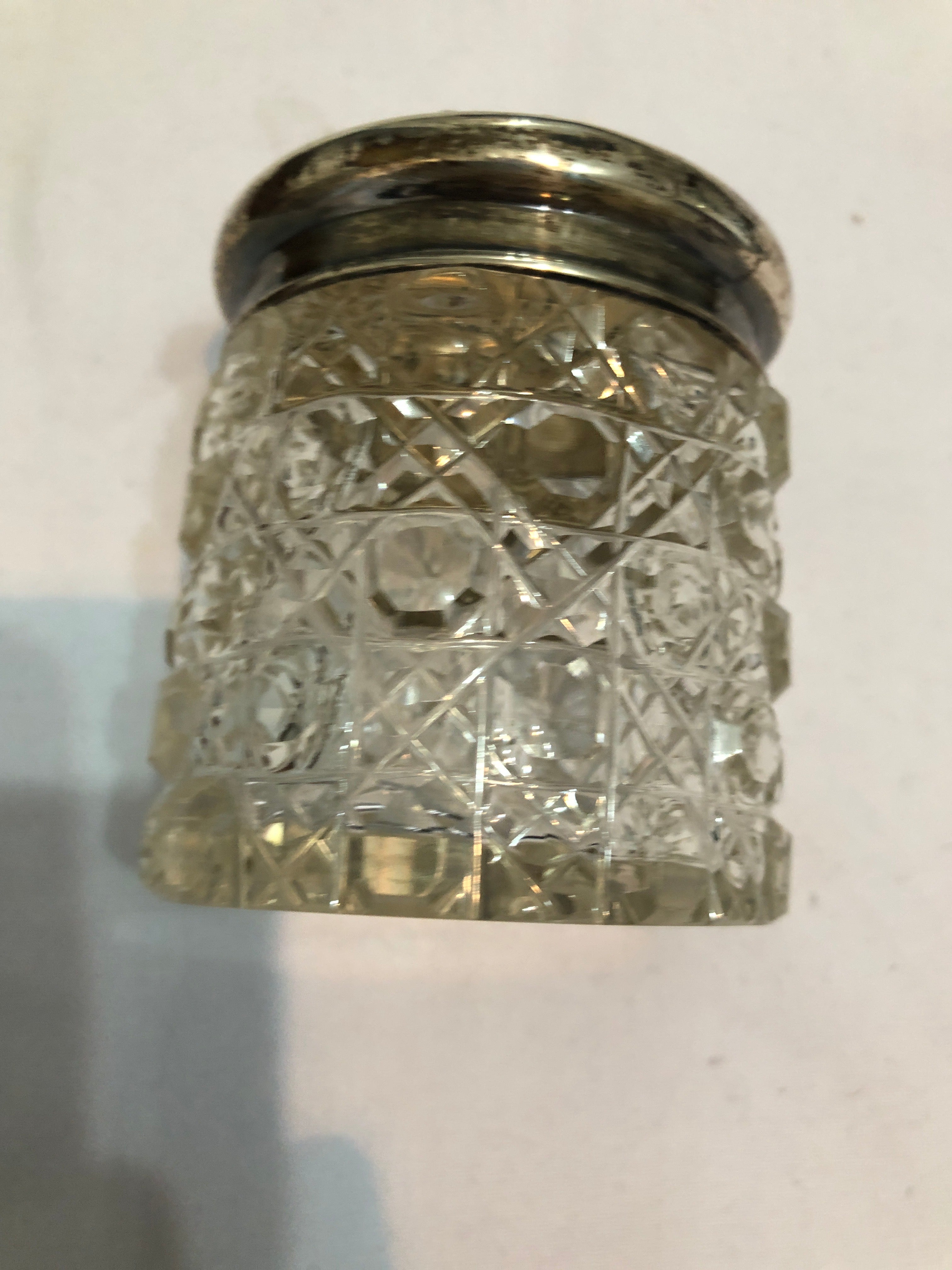 Antique Silver Topped Cut Glass Dressing Table Jar.