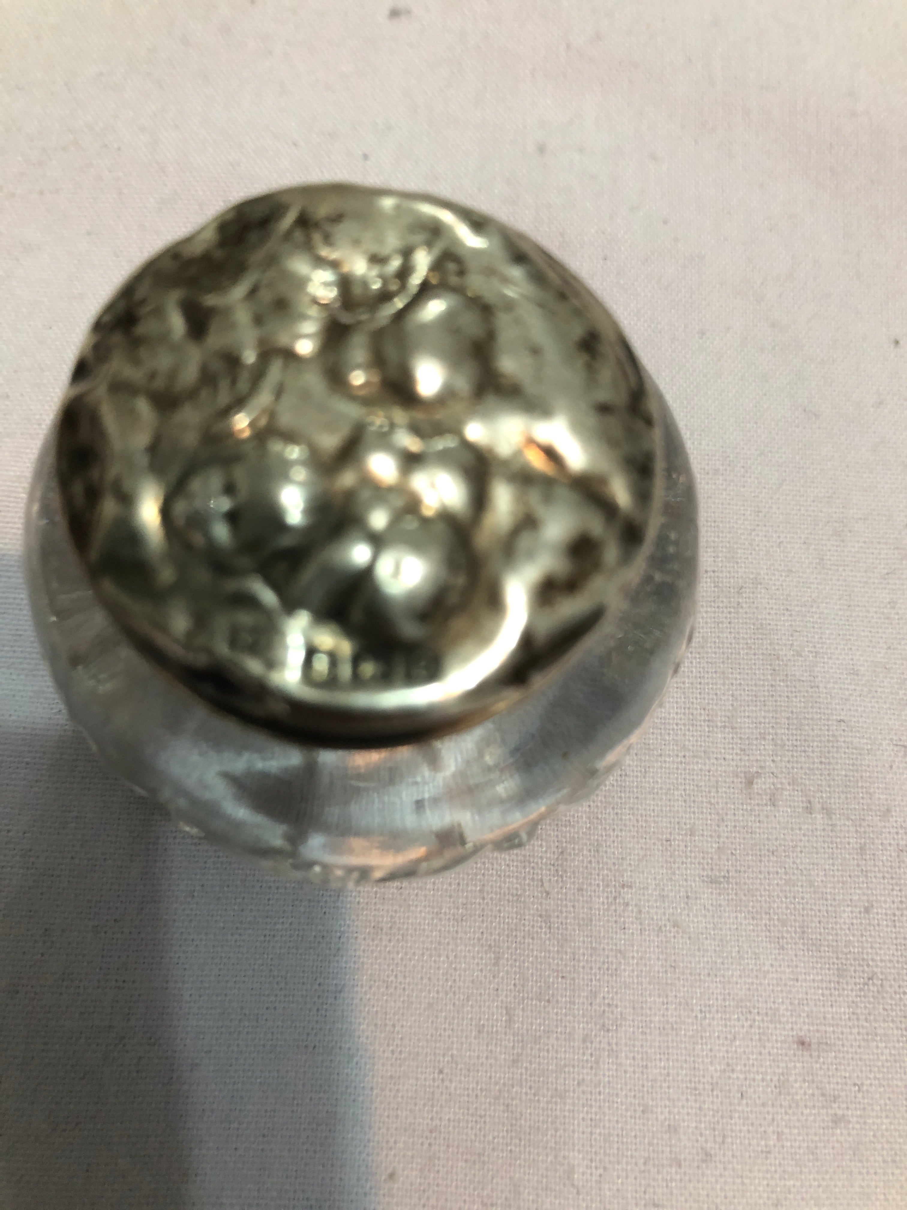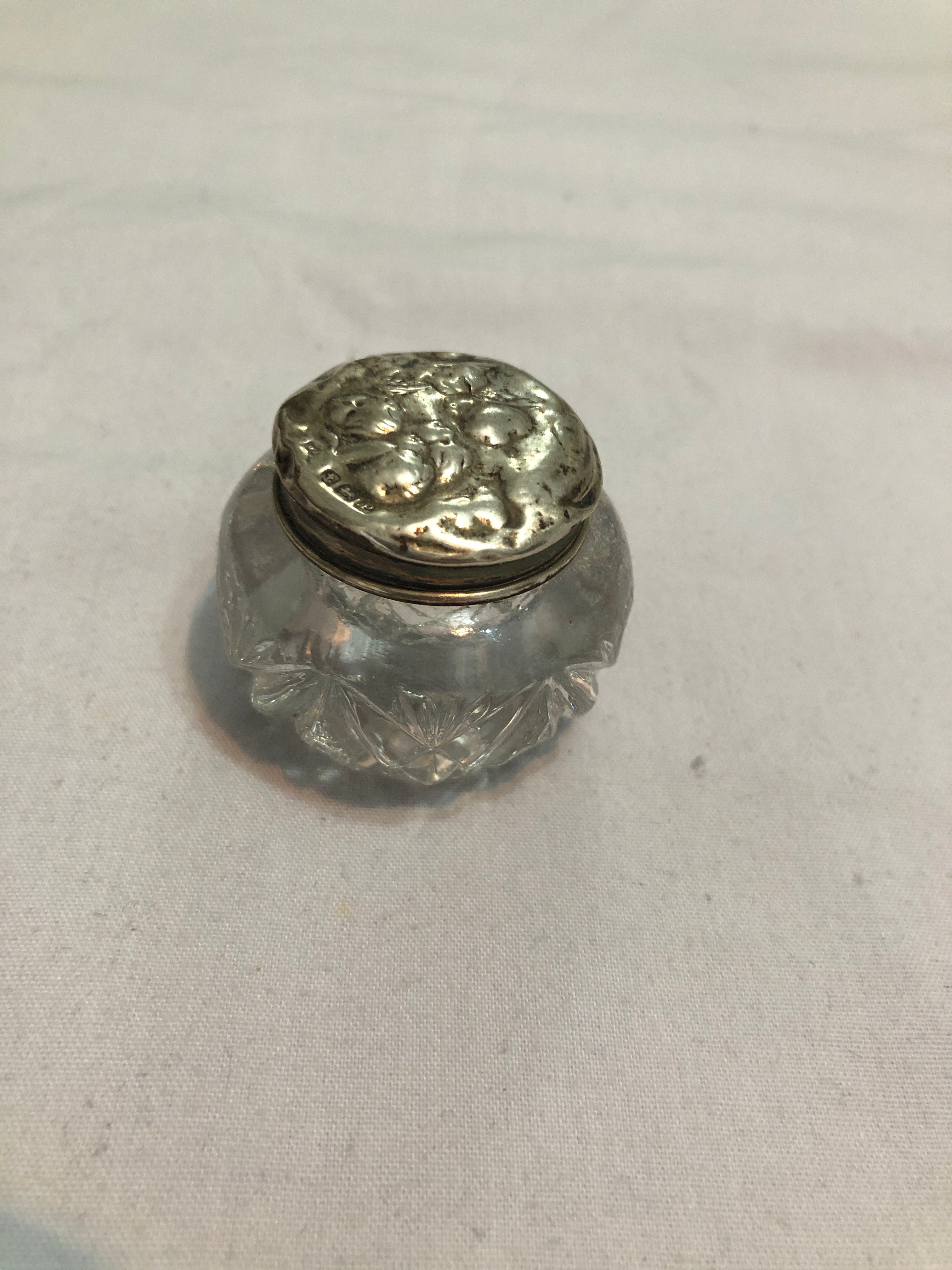 Here we have a lovely Antique Silver Topped Cut Glass Dressing Table Pot