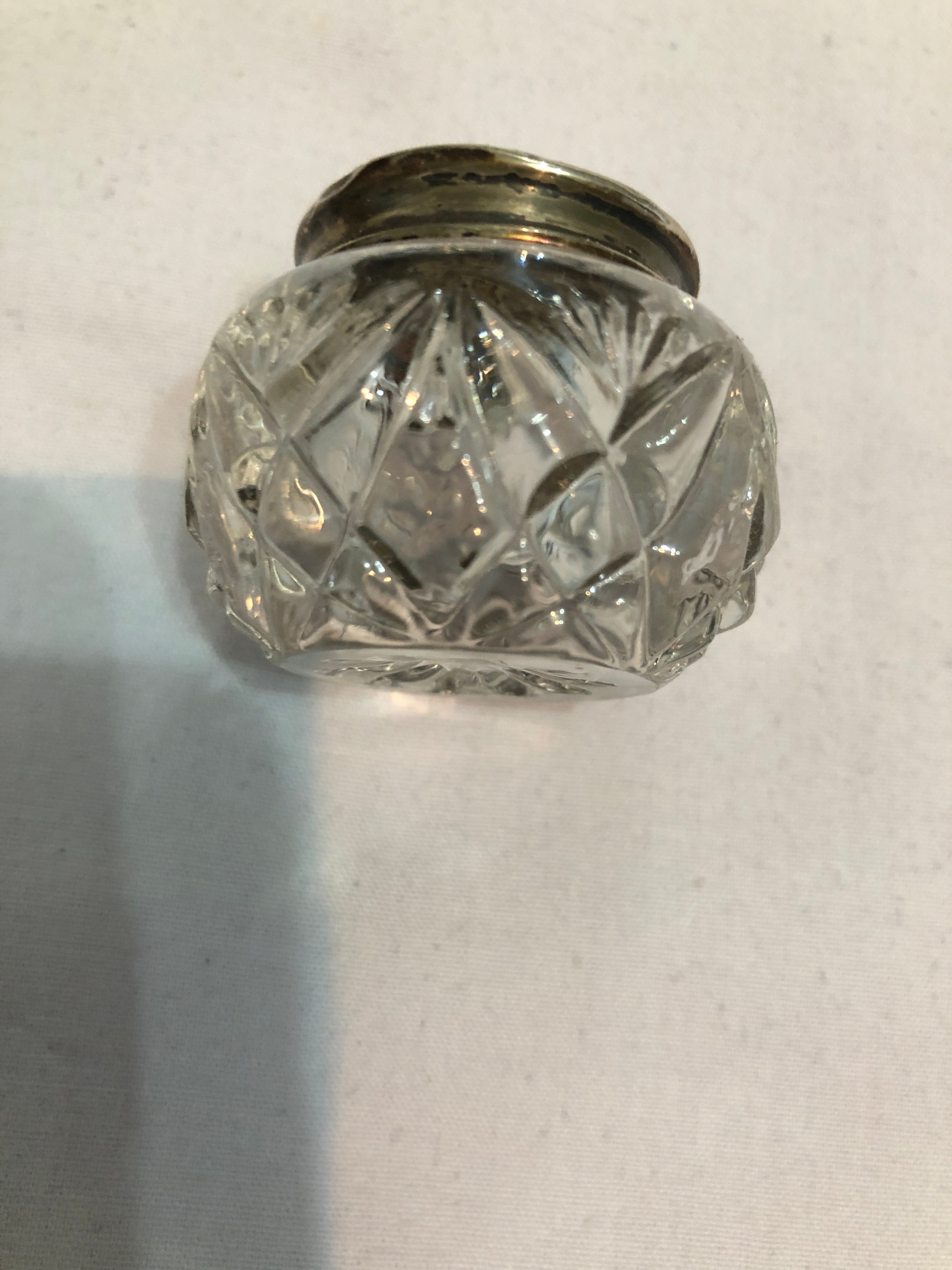 Antique Silver Topped Cut Glass Dressing Table Pot.