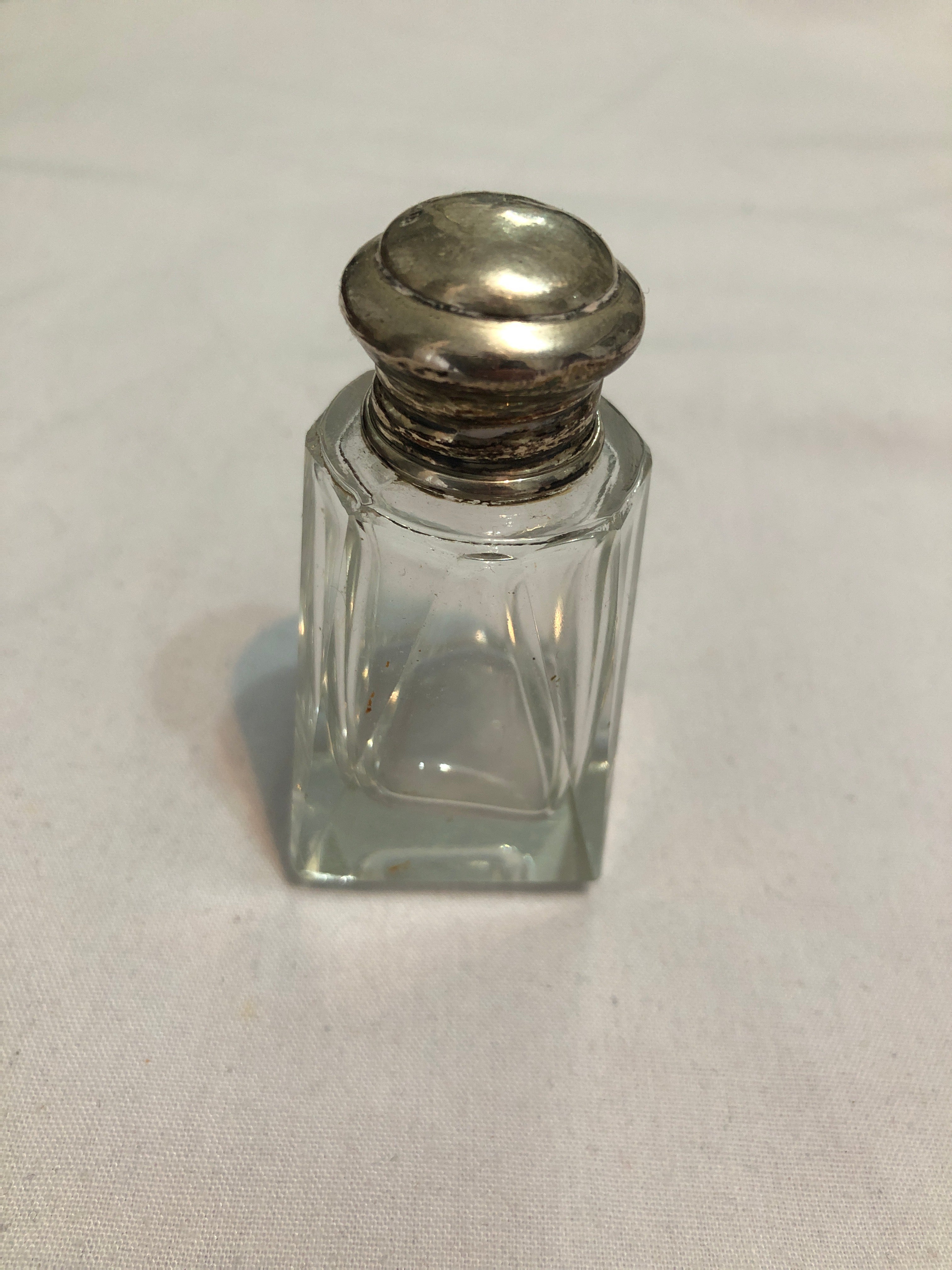 Antique Silver Topped Glass Perfume/Scent Bottle.