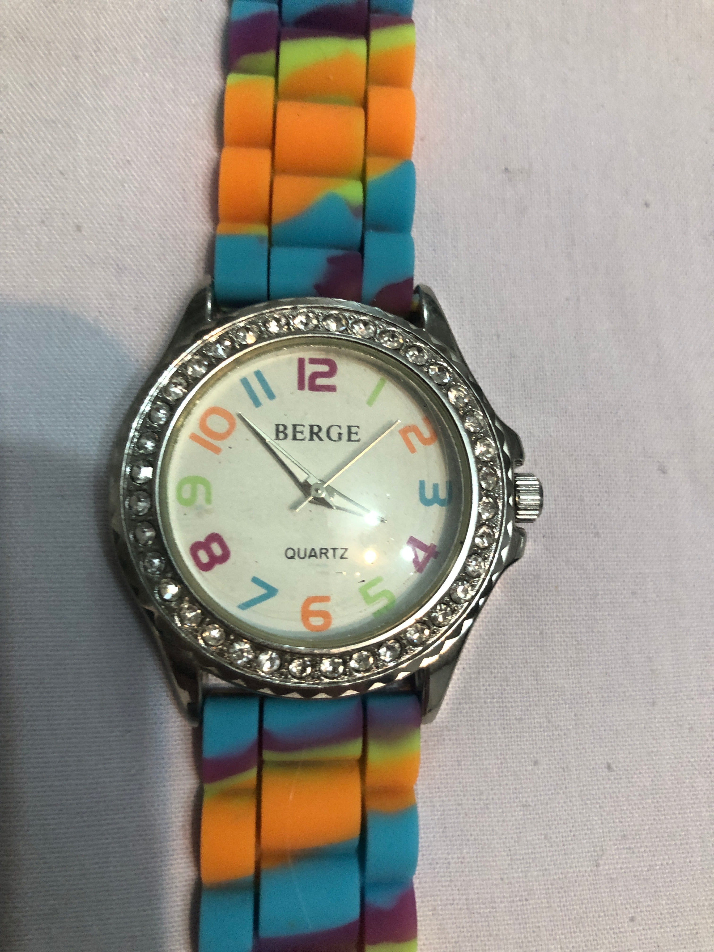 Berge Quartz Wristwatch With Multi Coloured Strap.