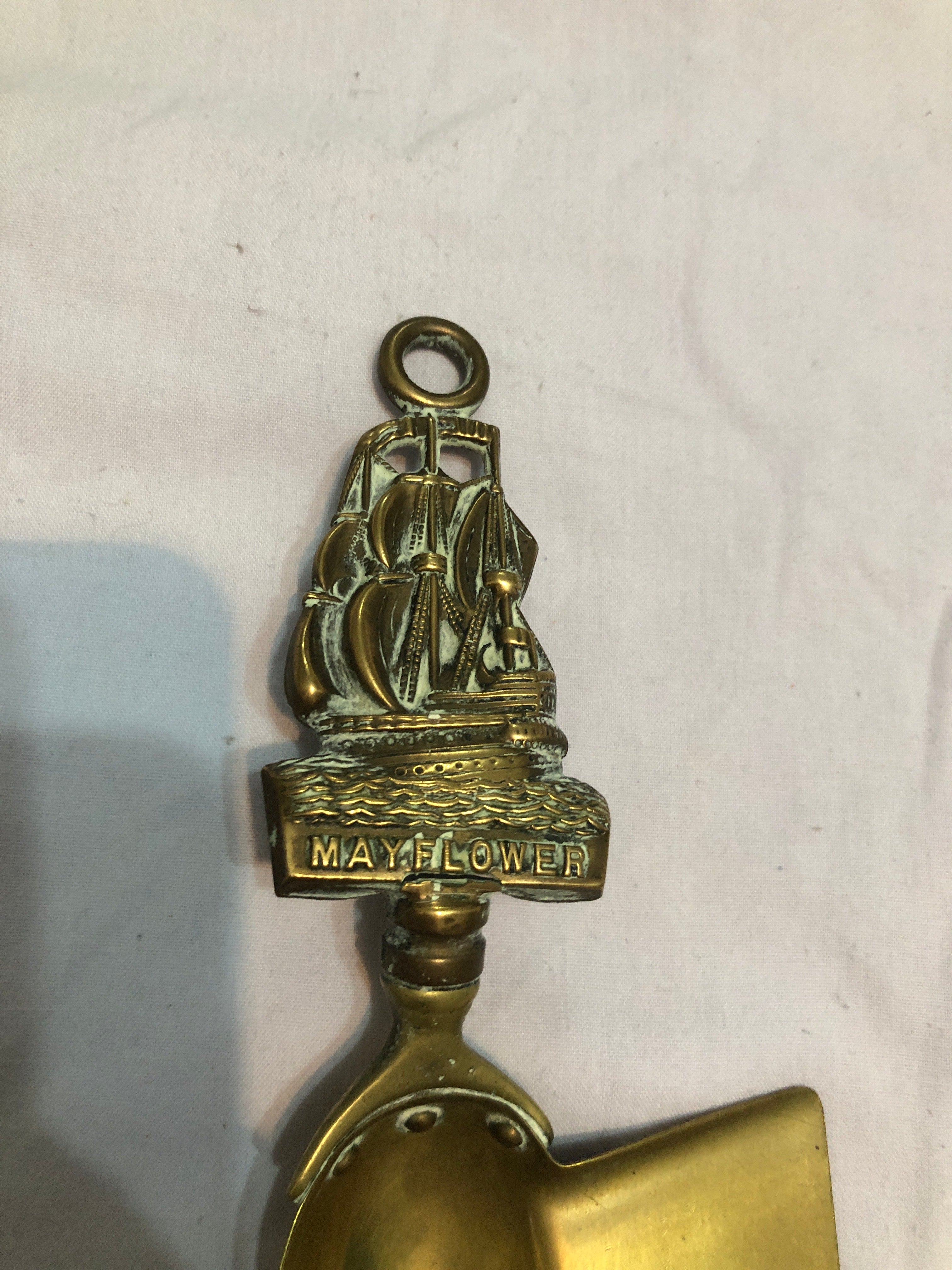 It is in good condition and its handle is in the form of the ship 'Mayflower'.