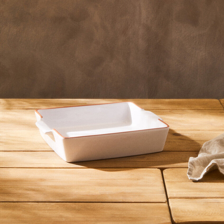 Brighten your bake night with the Calisto Terracotta White Glazed Oven-to-Table Dish. The clean white surface lets golden crusts shine, while the warm rim adds soft character. Move from oven to dining room with confidence and style.