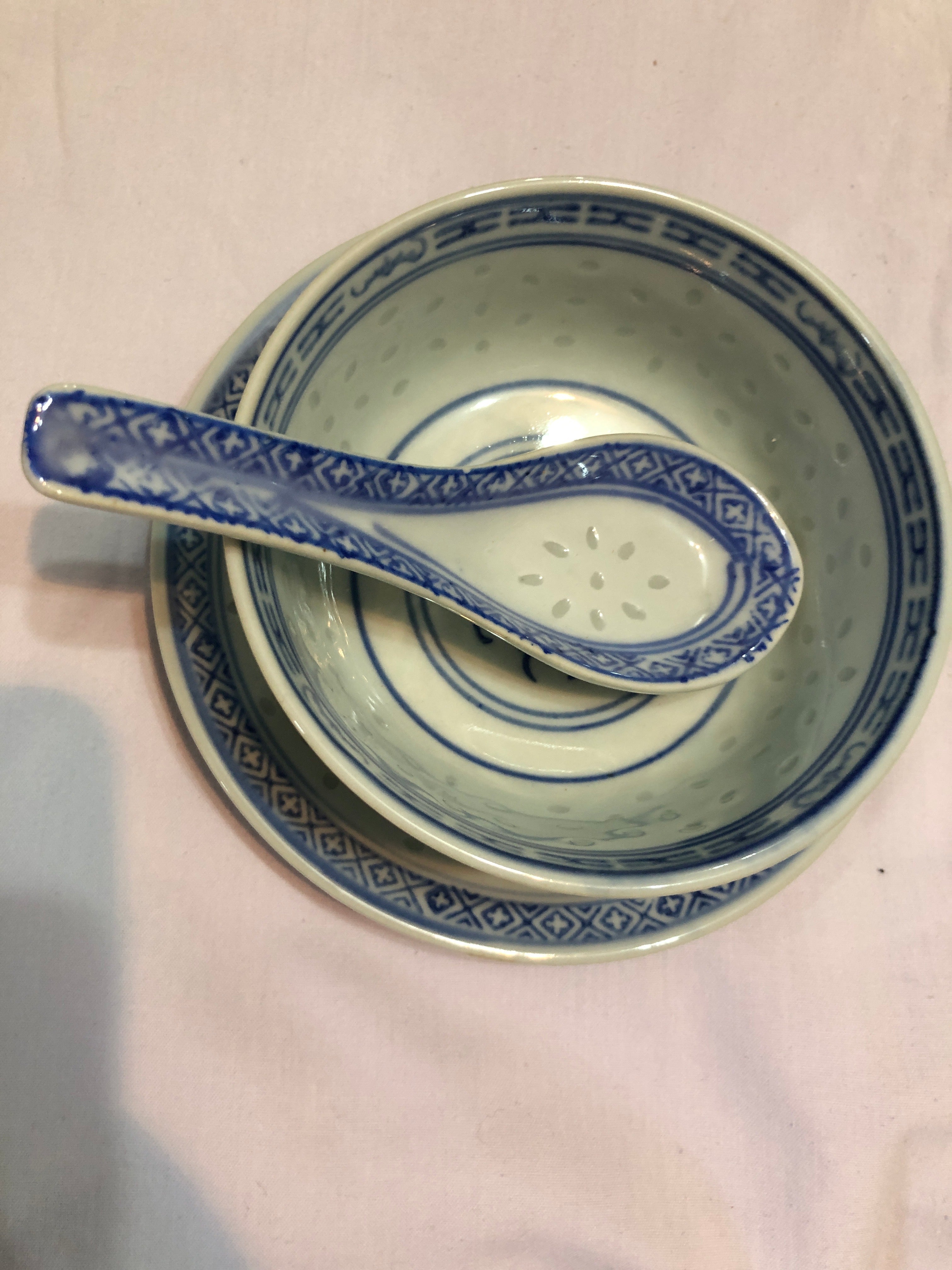 Here we have a lovely Chinese Rice Dishes, Plates & Spoons Set.
