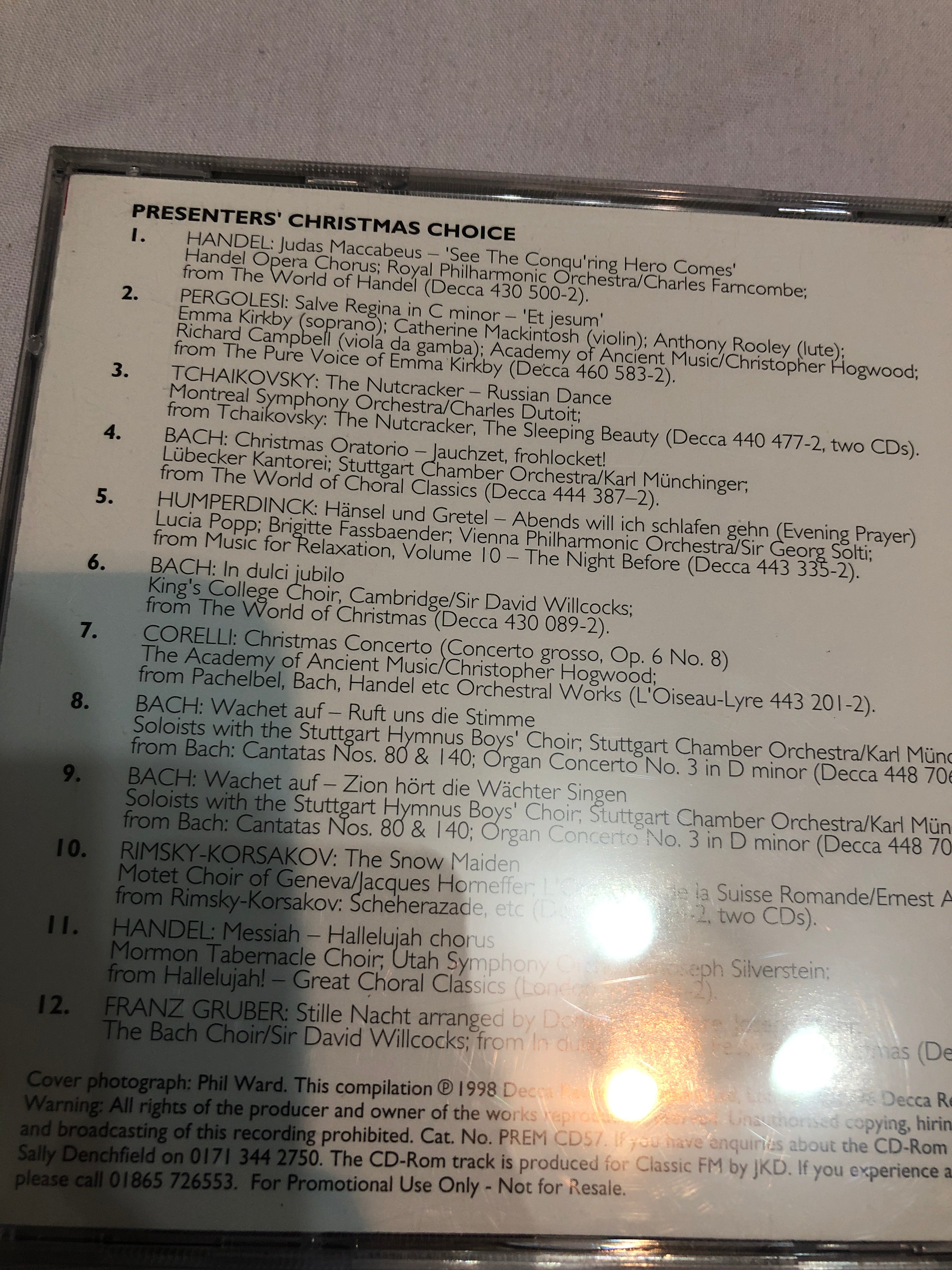 Here we have a Decca Classic FM Presenters Choice Christmas CD.