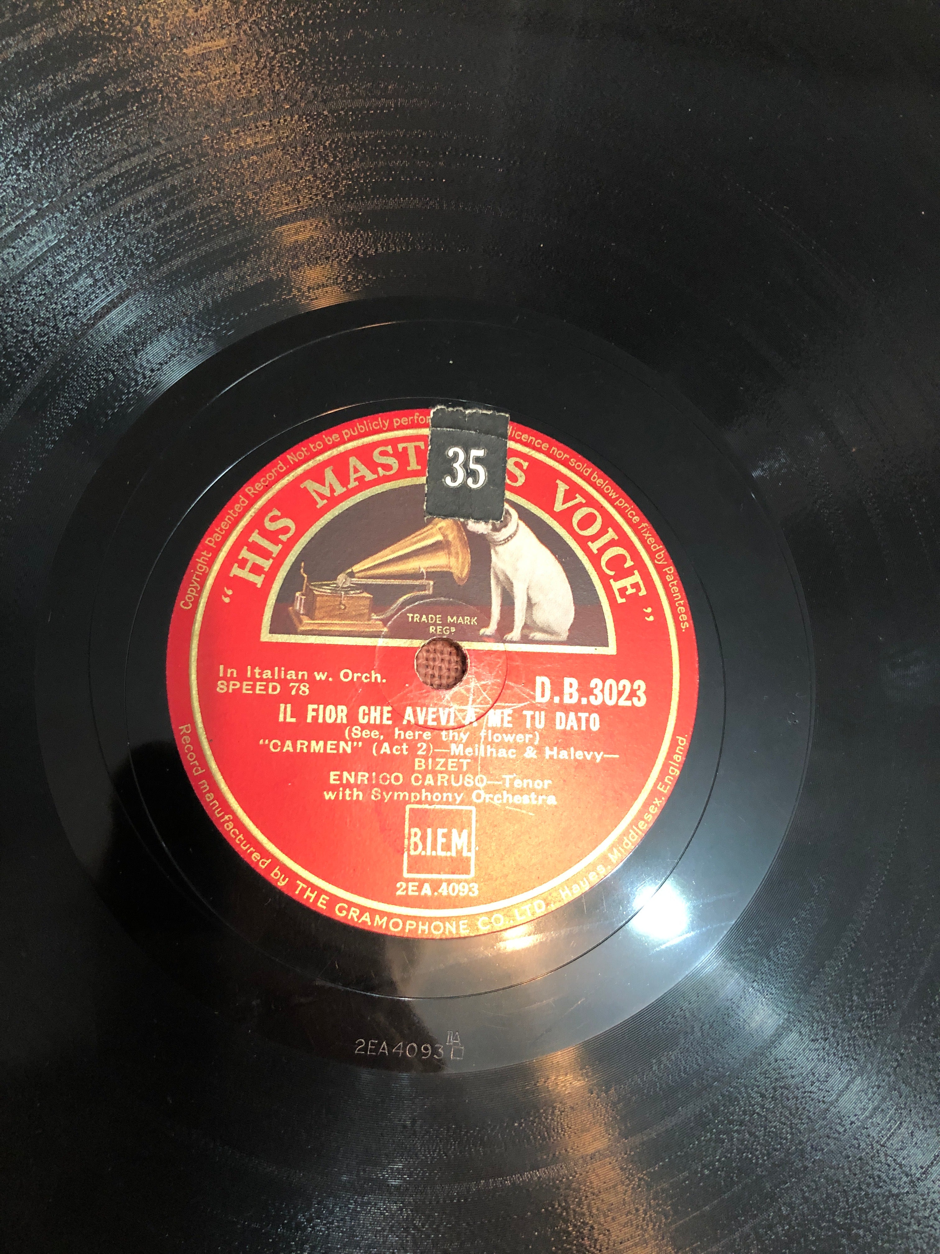 Enrico Caruso 78rpm Record Singing From Cavelleria Rusticana & Carmen.
