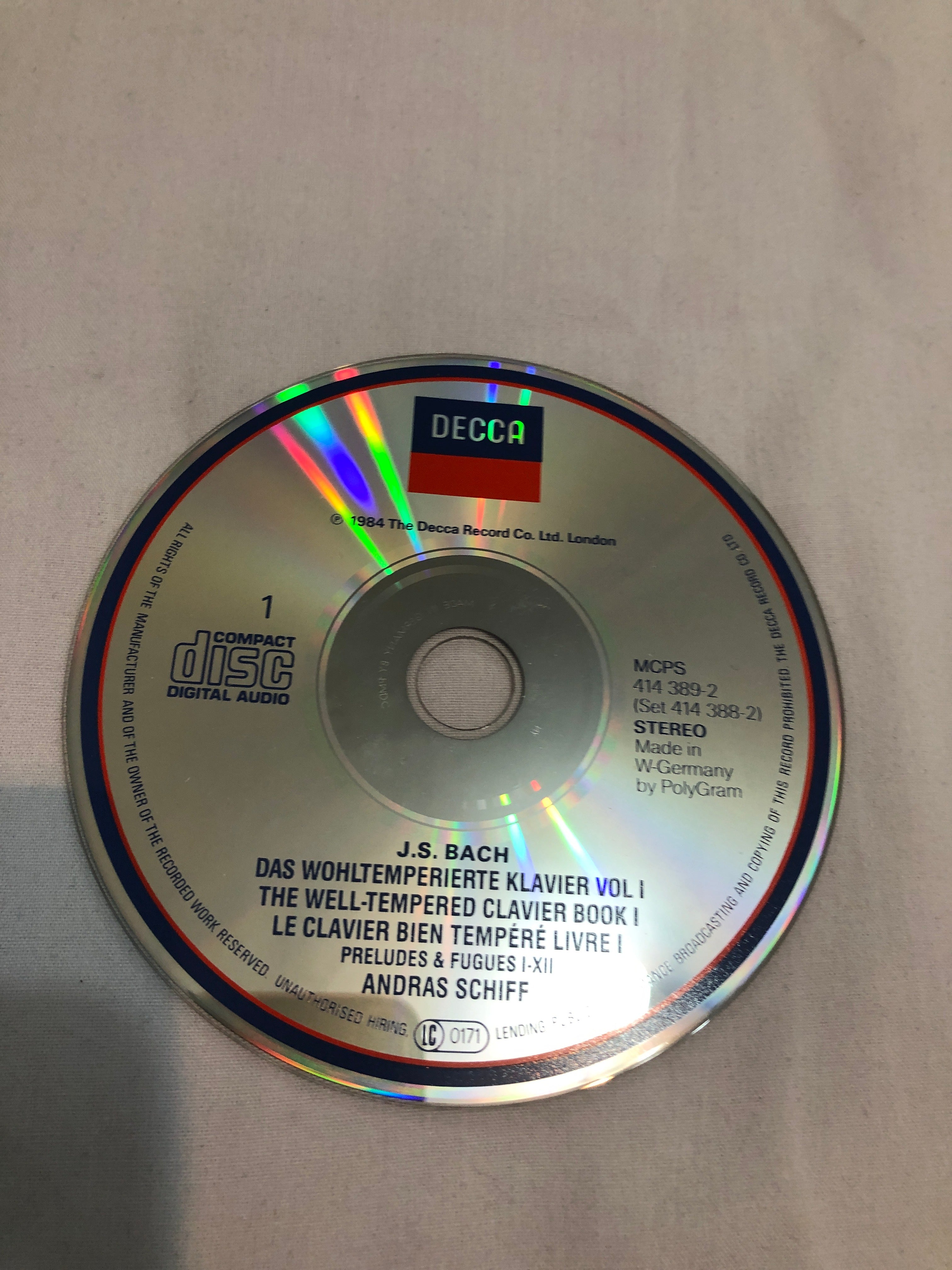 Here we have a Decca CD. J S Bach - Das Wohltemperierte Klavier 1.