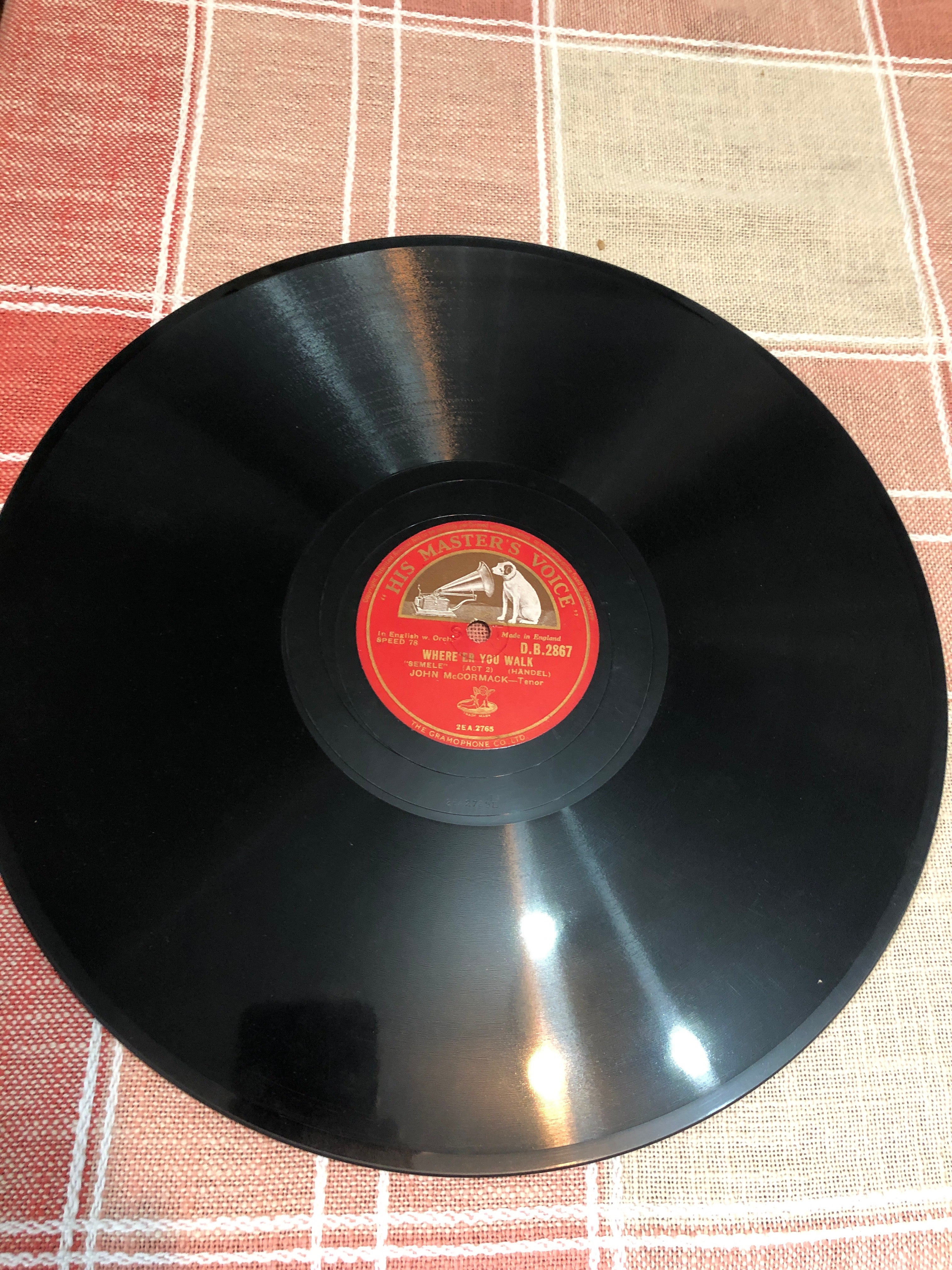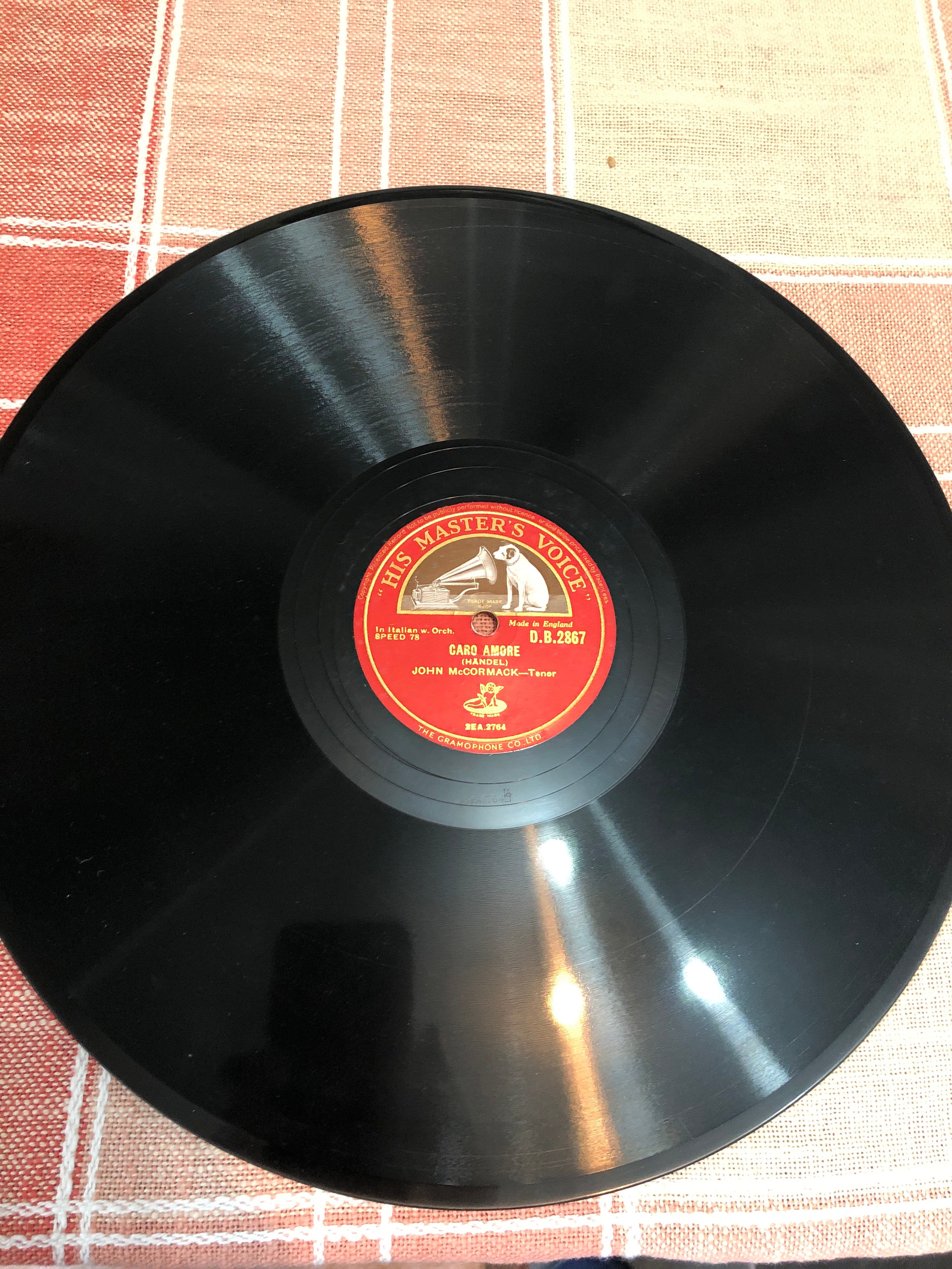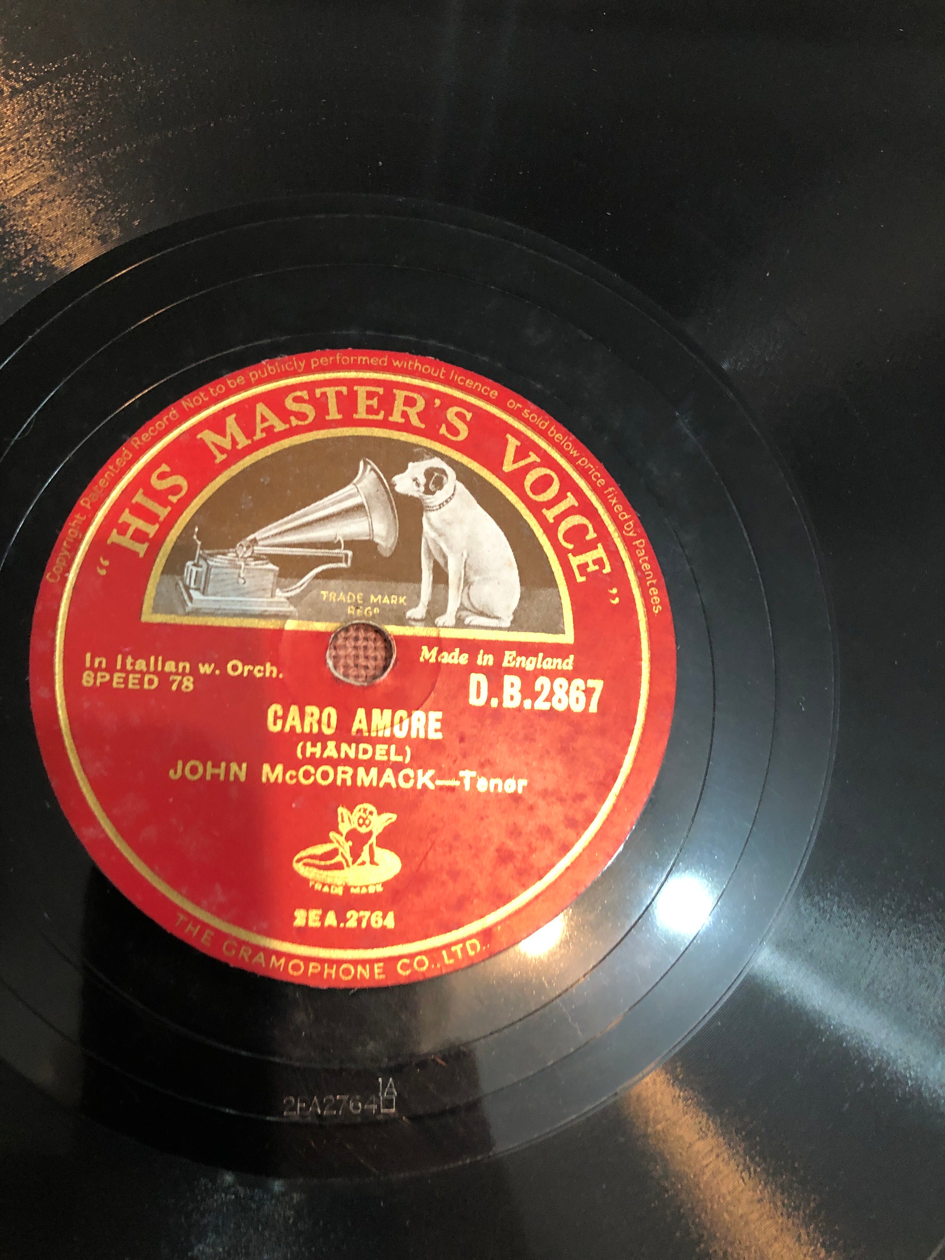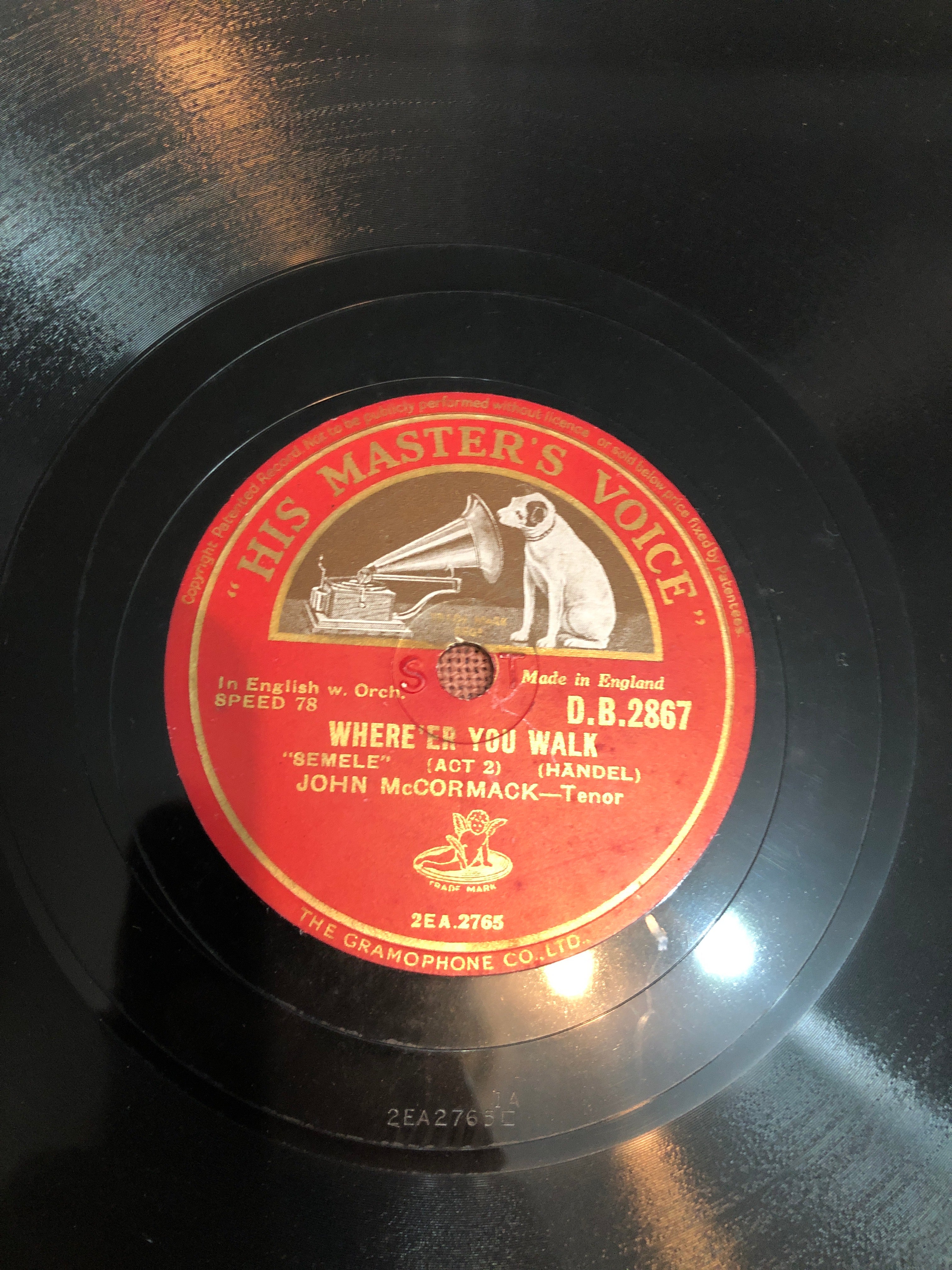 Here we have a 12inch 78rpm recording on the HMV Label of John McCormack singing Where Er You Walk Caro Amore.
