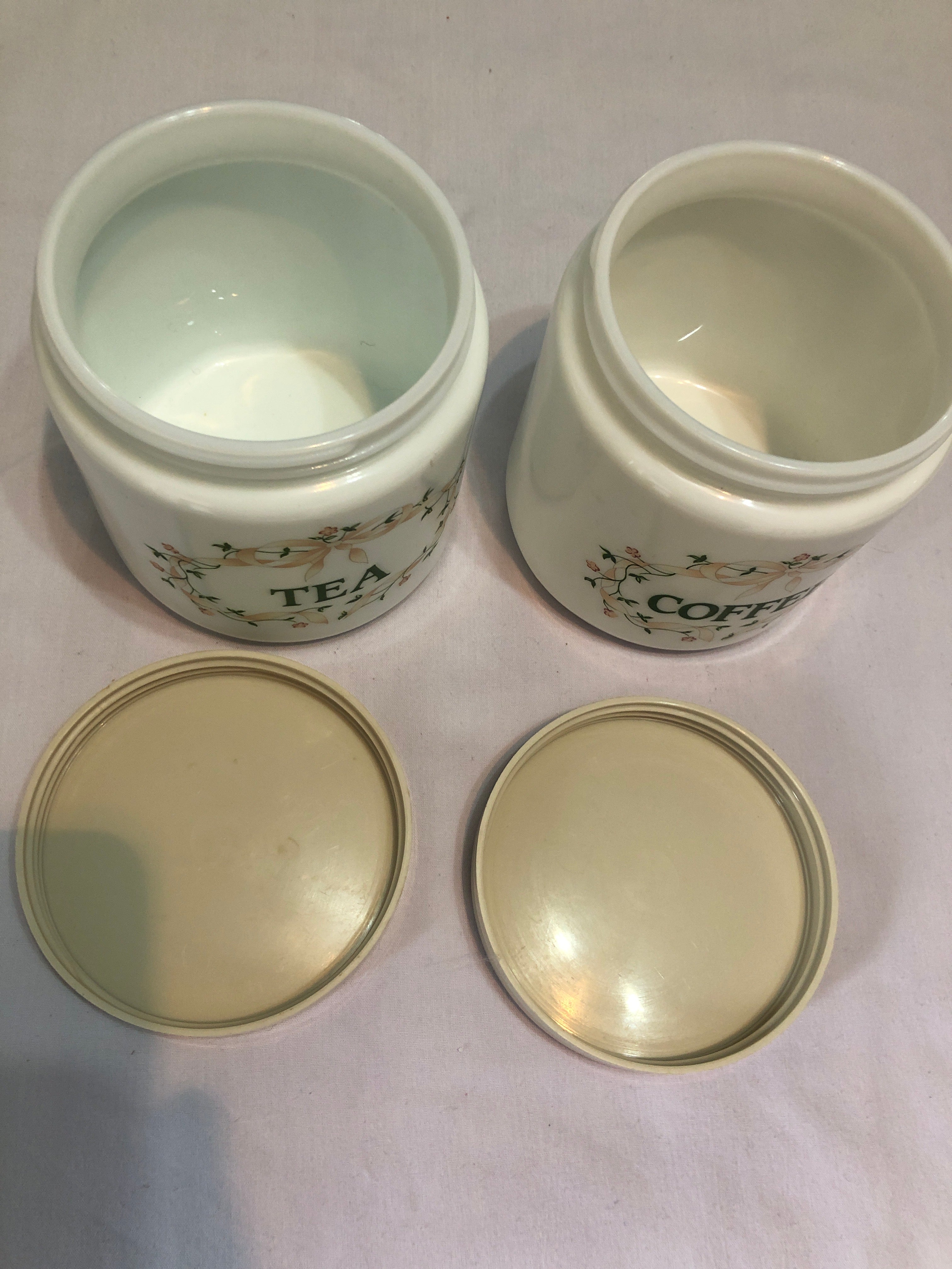 Here we have a lovely Johnsons Bros Eternal Beau Tea & Coffee Containers in White Glass.