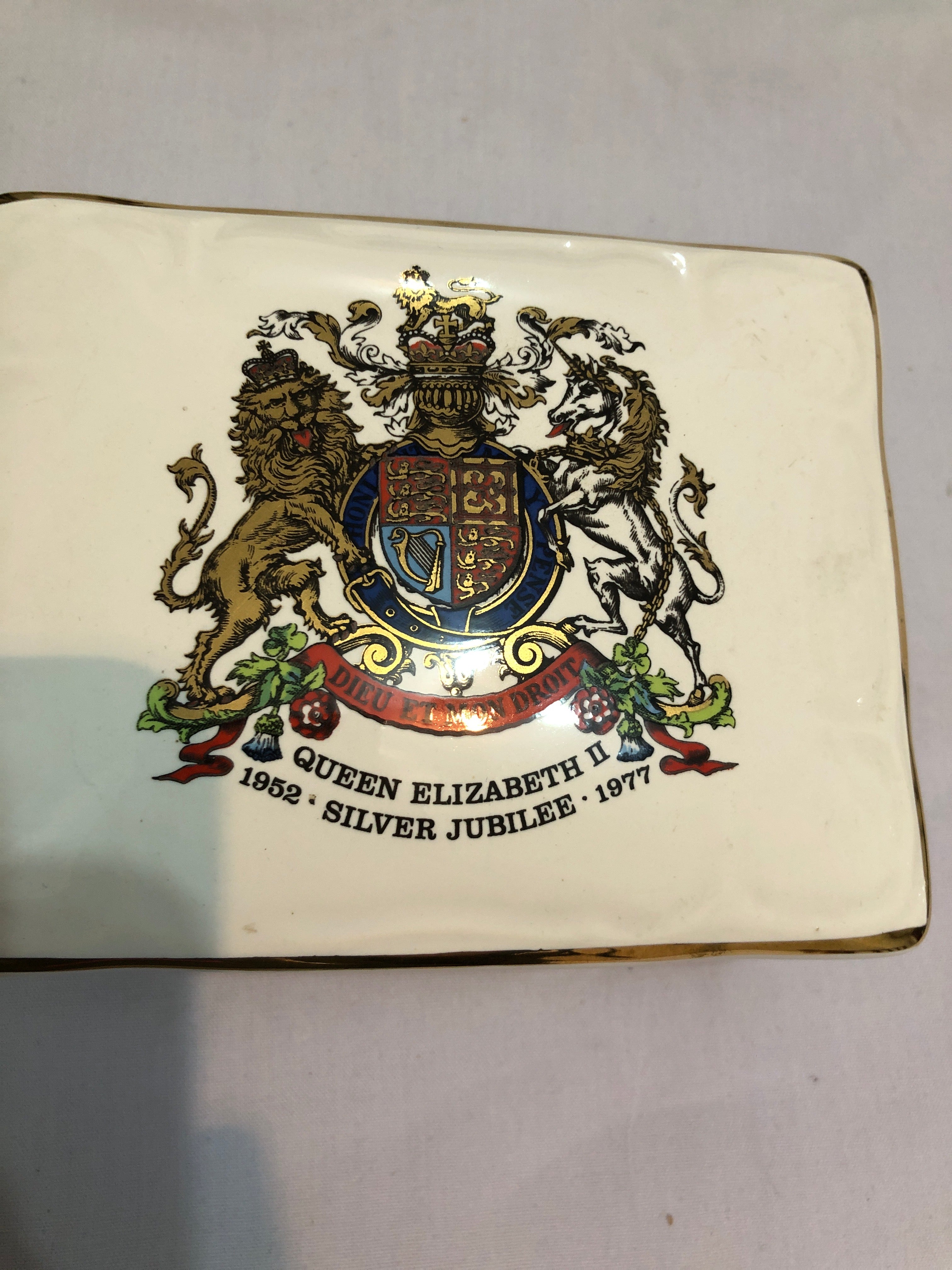 Royal Worcester Queen Elizabeth Silver Jubilee Commemorative Trinket Pot.