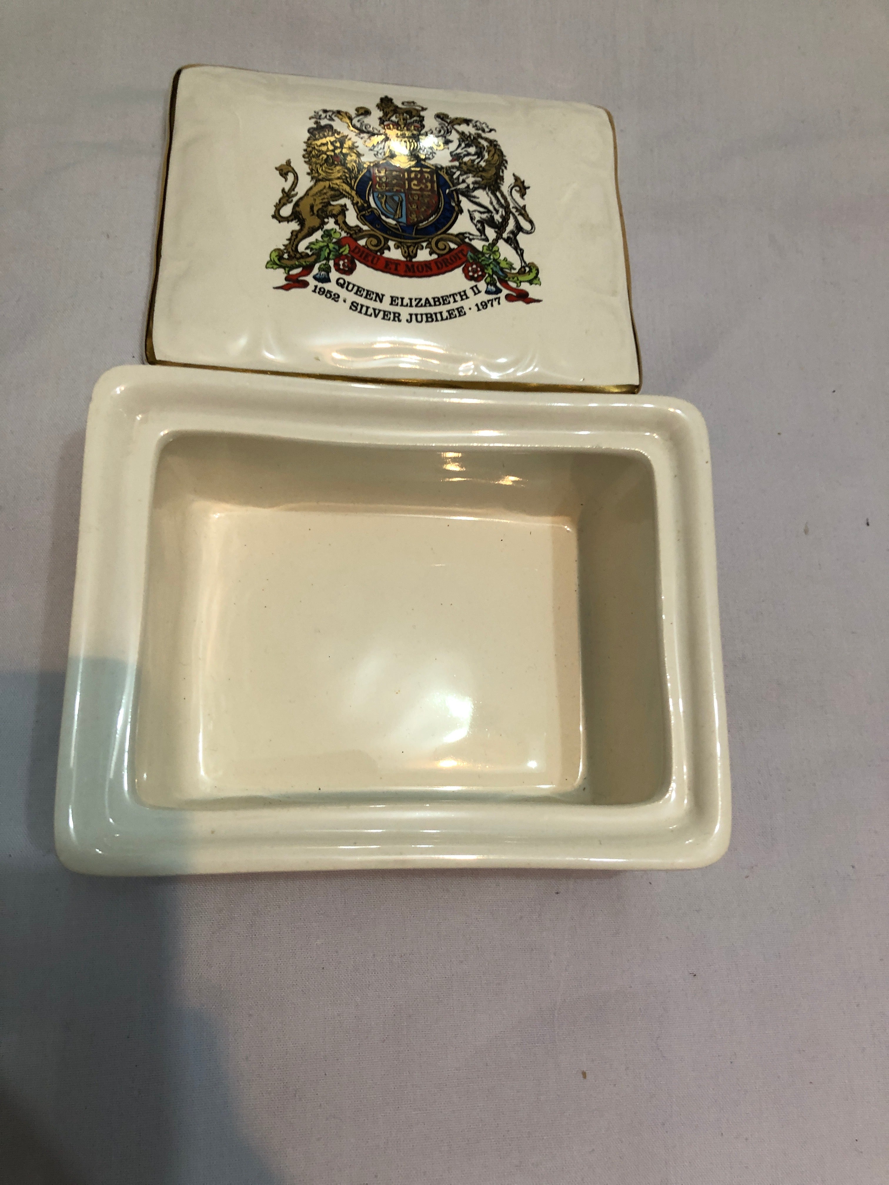 Here we have a lovely Royal Worcester Queen Elizabeth Silver Jubilee Trinket Pot.