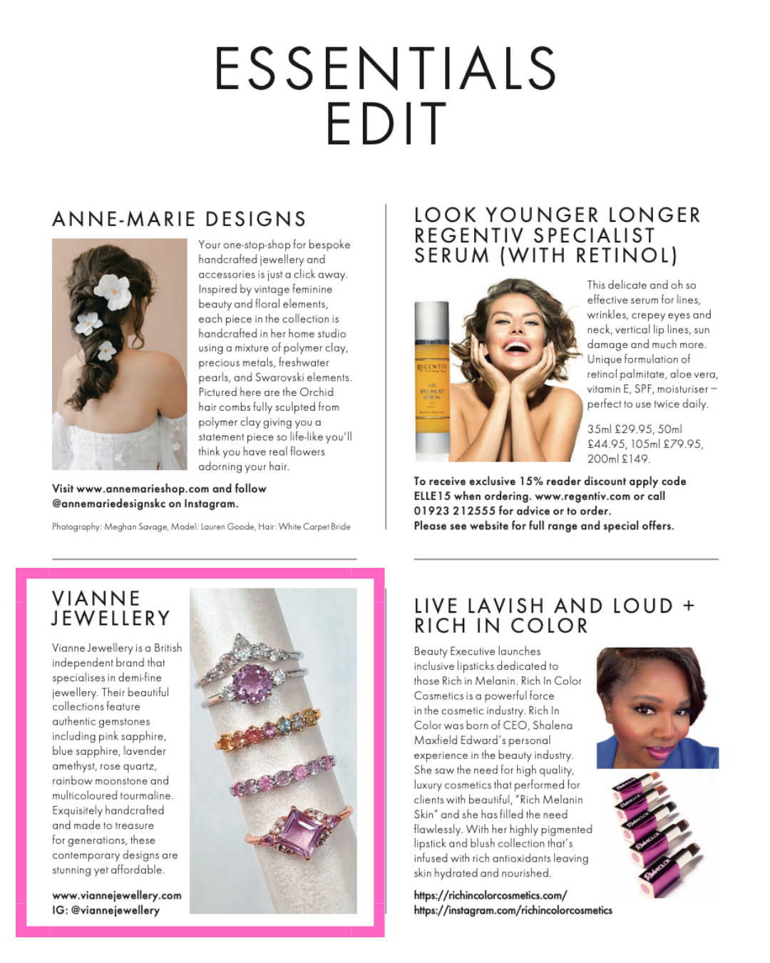 **As seen in ELLE Magazine (UK) 'Essentials Edit' - DEC21/JAN22 issue**