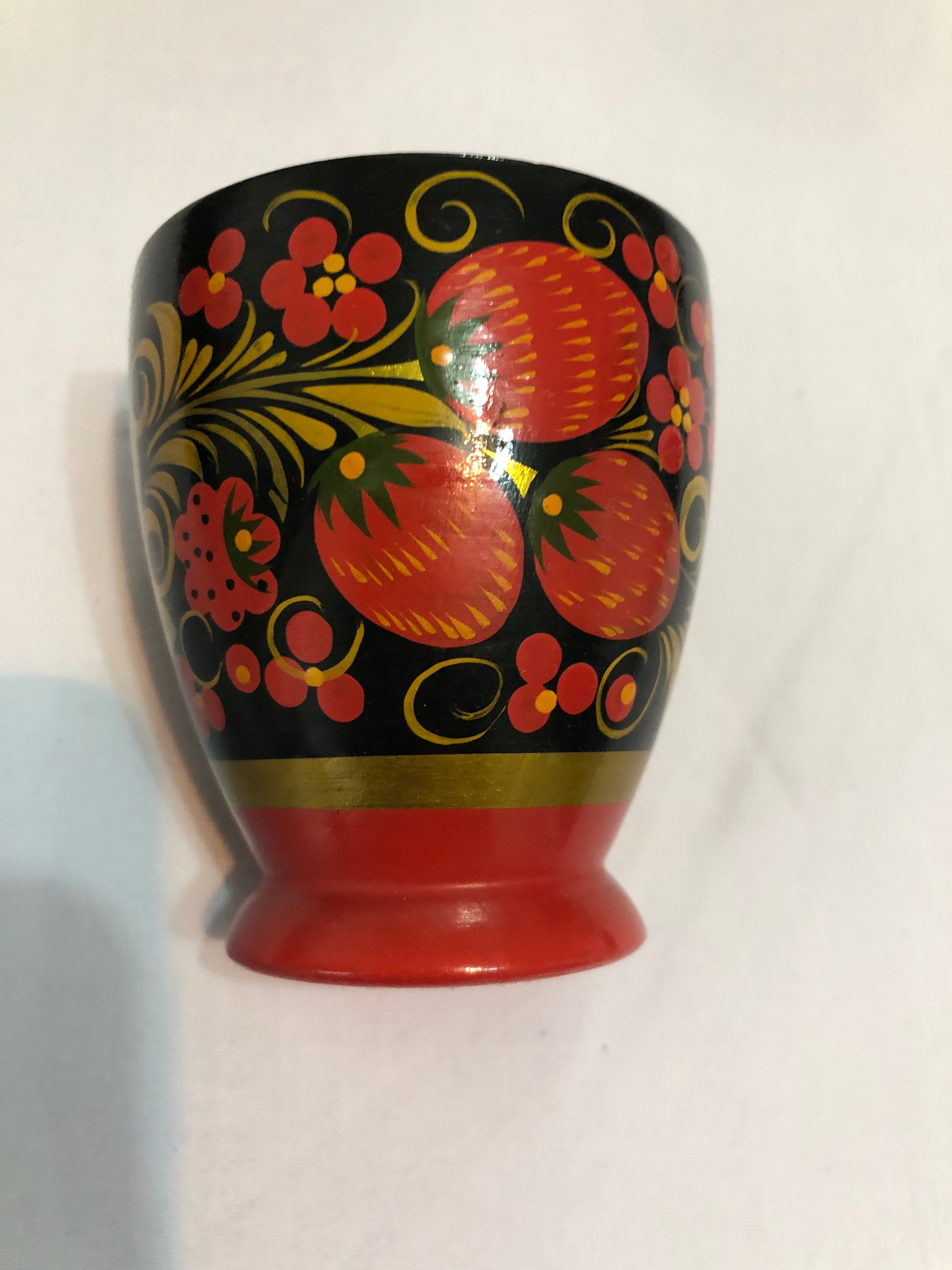 Vintage Russian Khokhloma Plate, Cups & Musical Decanter.