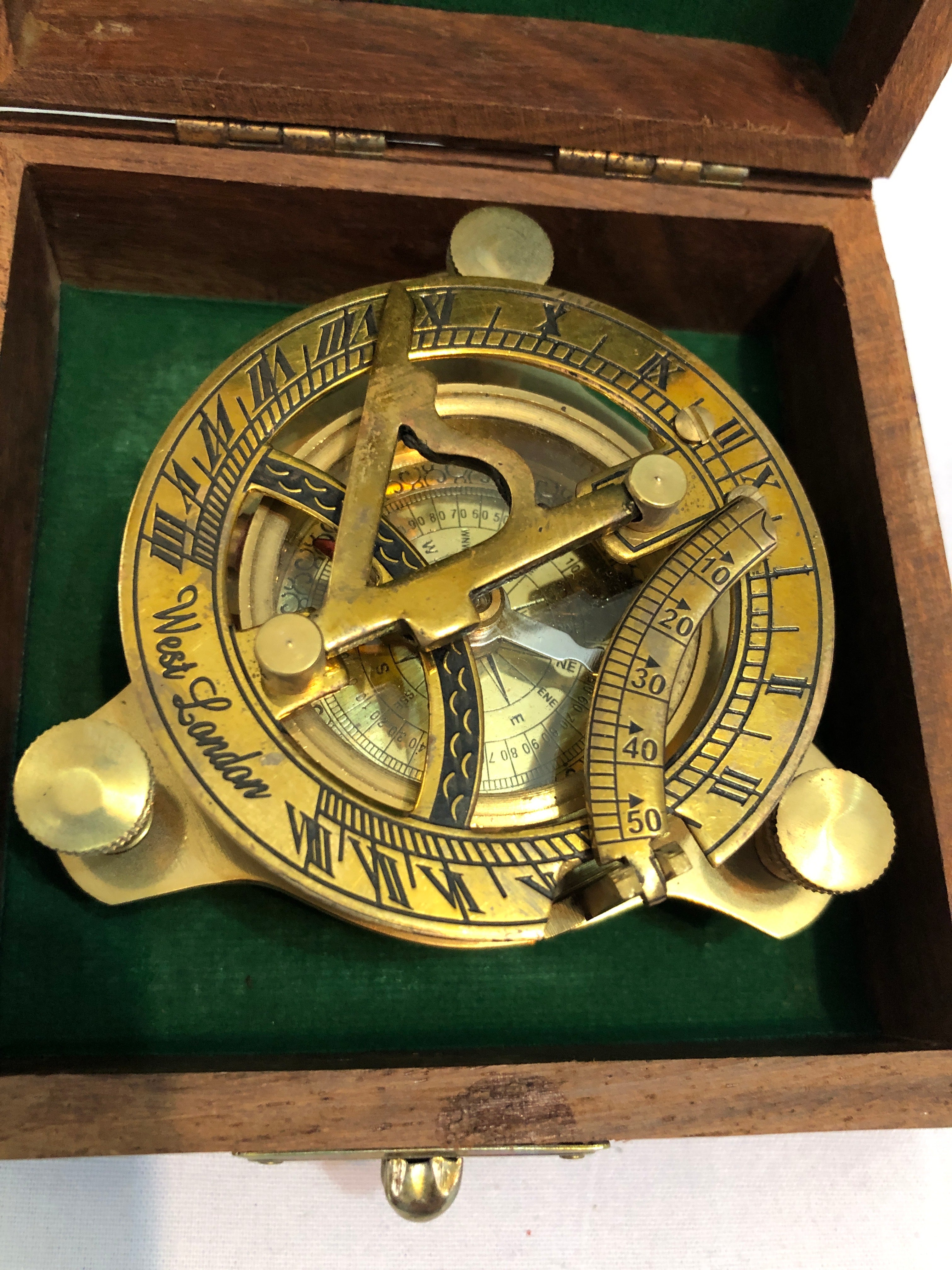 Here we have a lovely West London Brass Sundial in its original case and complete with instructions.